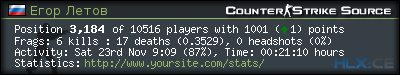 | Любимая карта:* | de_dust2 |