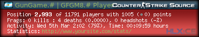 История GunGame.# | GFGM8.# PlayerСобытия | Сессии | Награды (0) | Чат